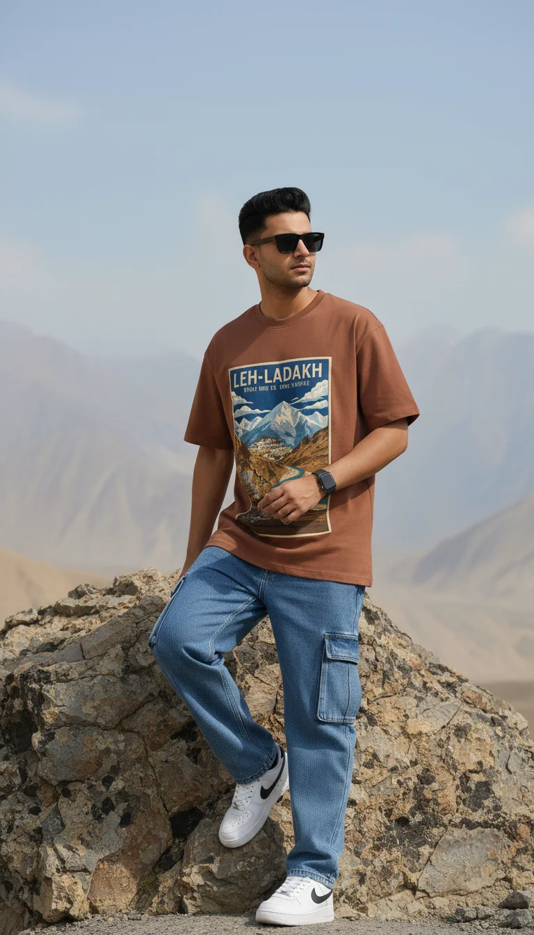 Leh-Ladakh Vibes Oversized T-Shirt to Upgrade your streetwear game with Glam Vibes 240 GSM Oversized T-Shirt, crafted from premium 100% cotton for a heavyweight, ultra-soft feel. Designed with a relaxed oversized fit, this tee delivers superior comfort, breathability, and long-lasting durability. Perfect for everyday wear, layering, or statement styling.