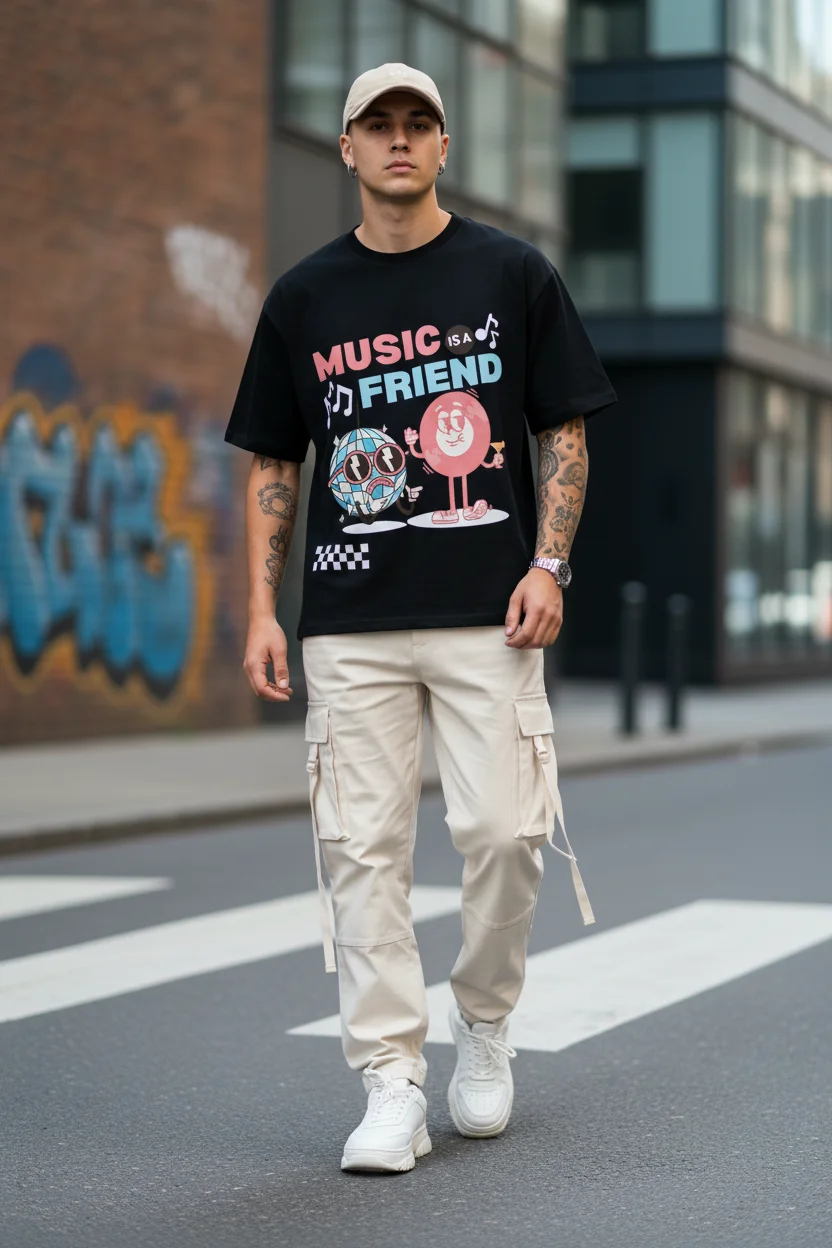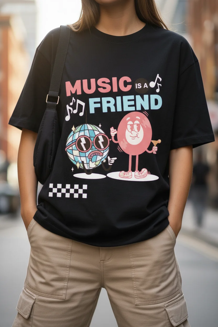 Music Friend Oversized T-Shirt to Upgrade your streetwear game with Glam Vibes 240 GSM Oversized T-Shirt, crafted from premium 100% cotton for a heavyweight, ultra-soft feel. Designed with a relaxed oversized fit, this tee delivers superior comfort, breathability, and long-lasting durability. Perfect for everyday wear, layering, or statement styling.